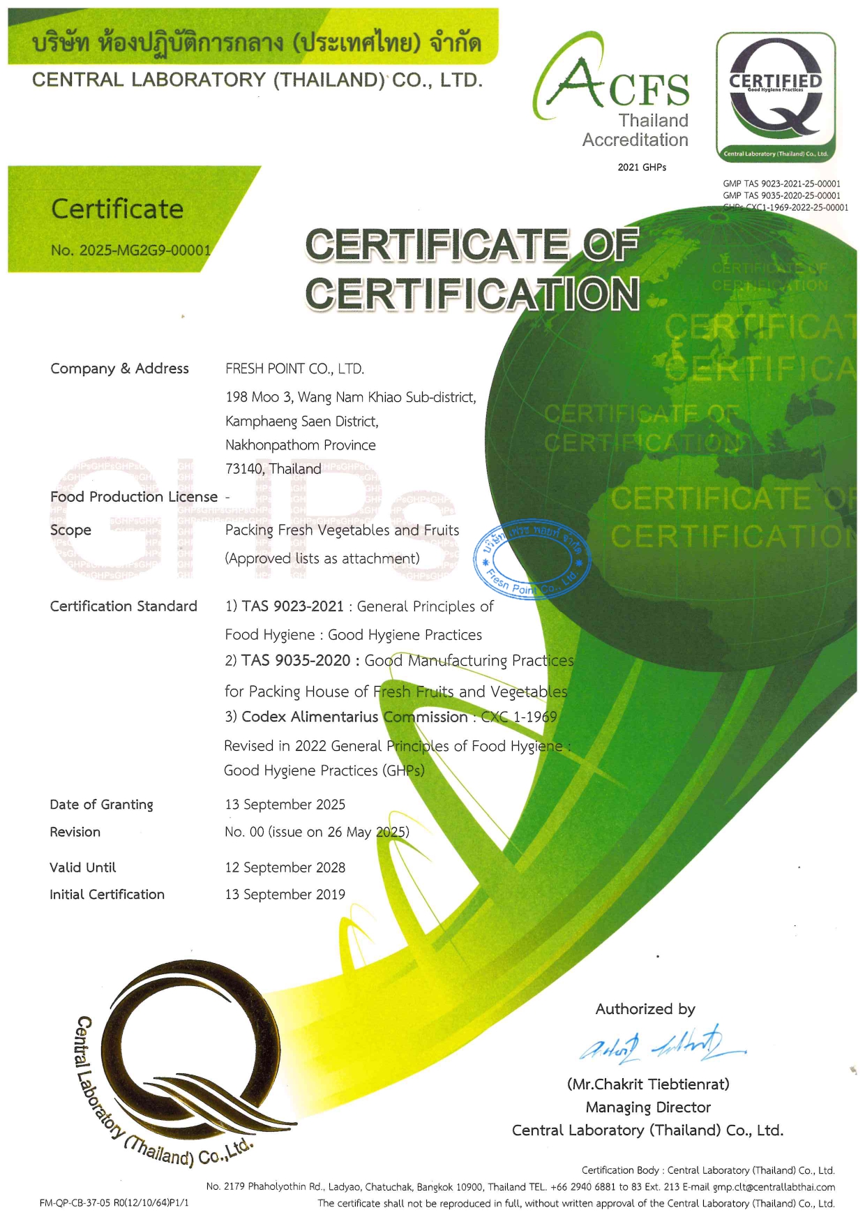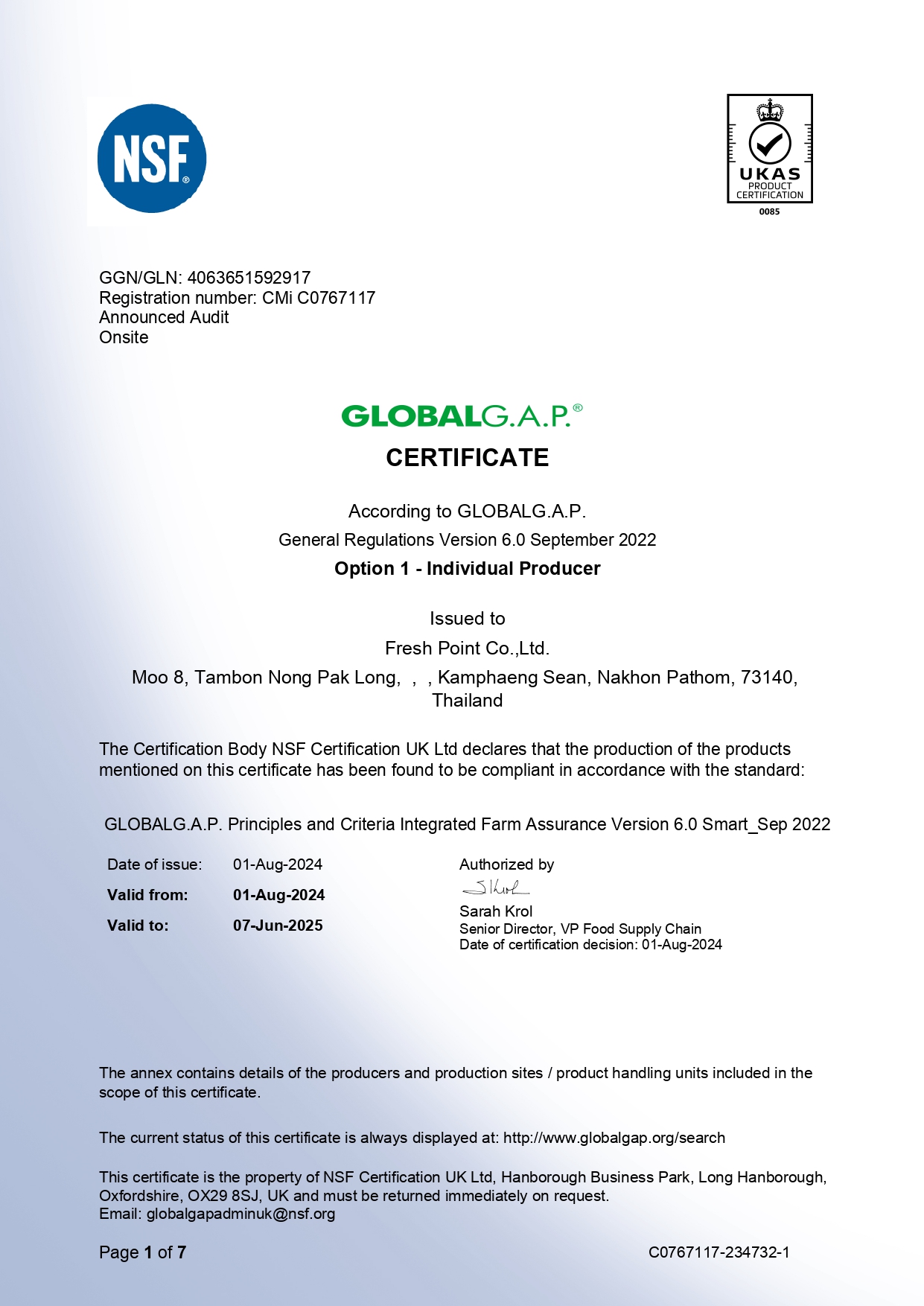 As a premier fruit and vegetable exporter in Thailand, these certifications highlight our dedication to delivering the highest quality and safest produce to our customers.